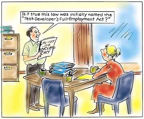 五科測驗都結束後就能輕鬆迎接暑假了嗎? 想得美啊!! 對某些老師來說, 離噩夢結束還遠著呢! 法律規定所有在美國住滿一年的 ESL學生(移民學生)都必須受測, 但這些學生也有權利免測, 以一次為限。法律也有規定學校必須以信件通知這些ESL學生的父母, 讓他們了解測驗的意義和子女受測的科目。於是咱們ESL部門的劫難在測驗前兩個月便早早開始。