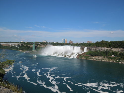 往左看, 美國那邊有兩個較小的瀑布, 叫做 American Falls 和 Bridal Veil Falls 。
