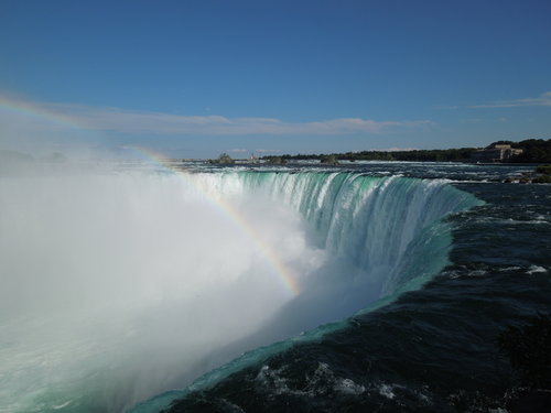 果然名不虛傳啊!! 所謂的尼加拉大瀑布其實是三個瀑布組成的, 三個瀑布中最大的就是眼前這一個 Horseshoe Falls 馬蹄鐵瀑布