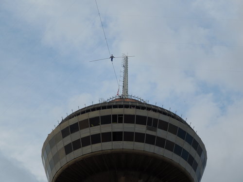 有個老頭每天表演走鋼索哩... 從七月走到九月, 佩服