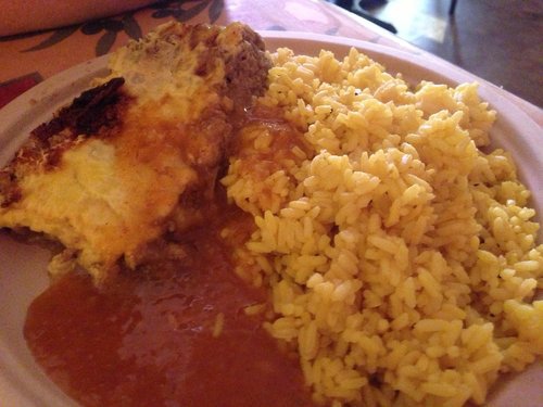 飯和絞肉塊... 那肉醬有點甜甜的, 不算好吃, 不過還真新奇, 從沒吃過