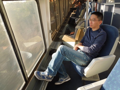 火車快飛 火車快飛... 其實一點也不快, 美國國鐵和貨車共用鐵軌, 有時候還得讓他們先過, 搭火車完全不省時, 但省力, 不像開車那麼累, 更比搭飛機有樂趣許多。
