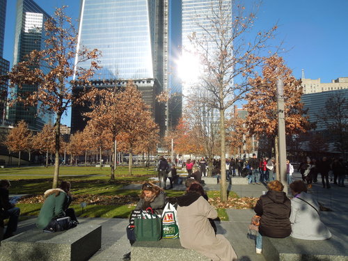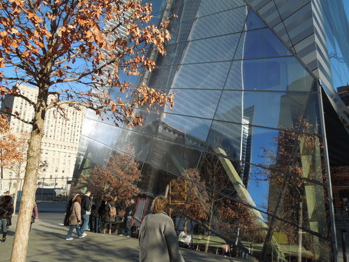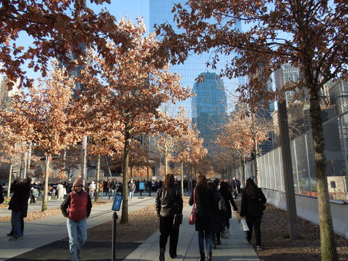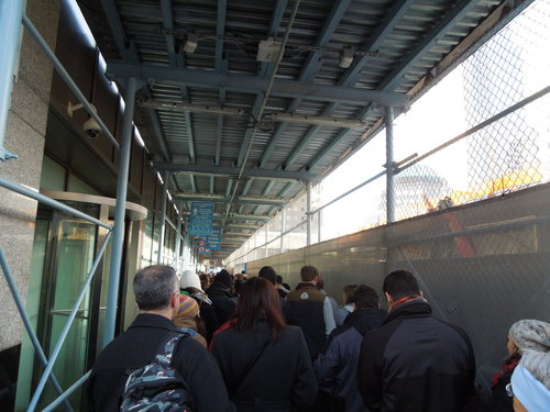 不是台北那個雙子星弊案啦.... 是美國紐約的世貿中心雙子星大樓。這兩棟有110層樓高, 開放於1973 年的摩天大樓我還沒有機會參觀就消失了, 只能來到紀念公園憑弔。 這裡是入口處前排隊的地方。 一定要有門票才能進去, 門票免費在網路上索取, 但有人數限制。
