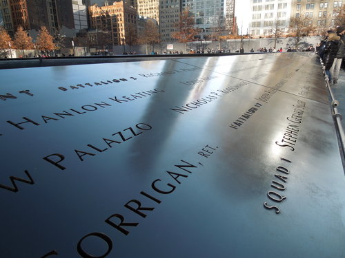 水池邊上刻有所有罹難者的名字