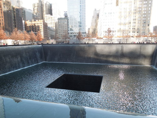 進來紀念公園會看到兩個大水池, 大水池就是世貿大樓當初佇立的地方