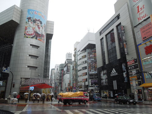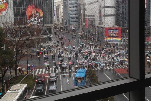 很多人一定知道這裡: 涉谷! 寒冷的空氣裡有雨也有雪, 真不好受啊