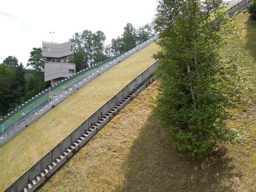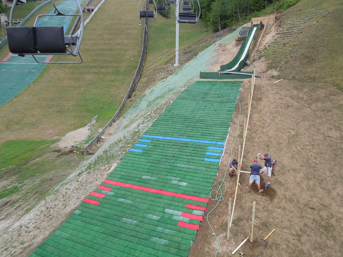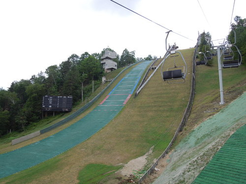 到達山頂後看到的是這個, 兩條跳躍式滑雪的軌道