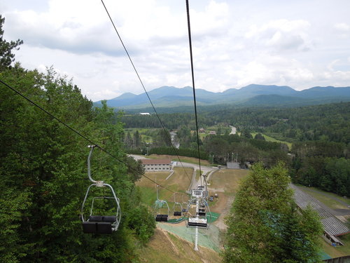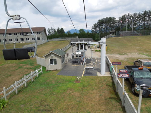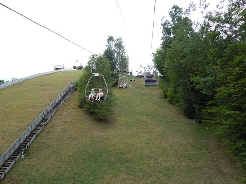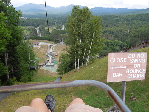 搭 ski lift 下山 (右邊警語: 不要搖動或劇烈晃動)