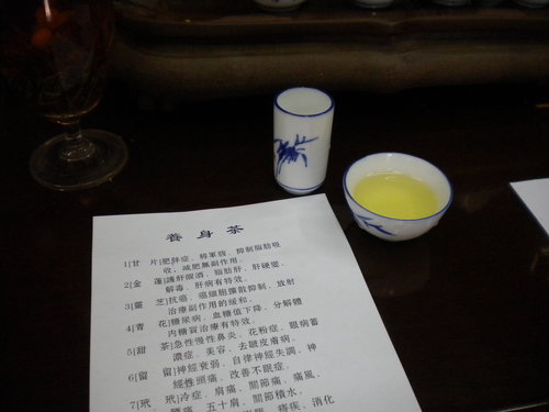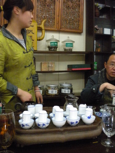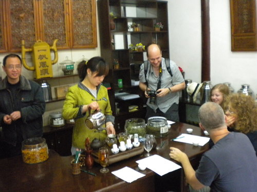 入座的的全都是歐美觀光客, 我跟一個美國人一塊旅行, 結果 "沾光" 一起被拉進來... 泡茶人員用流利英語講解各種茶的奇妙功效, 然後開始推銷, 價格貴的離譜, 分明是在敲詐外國人, 沒喝完便走人了......