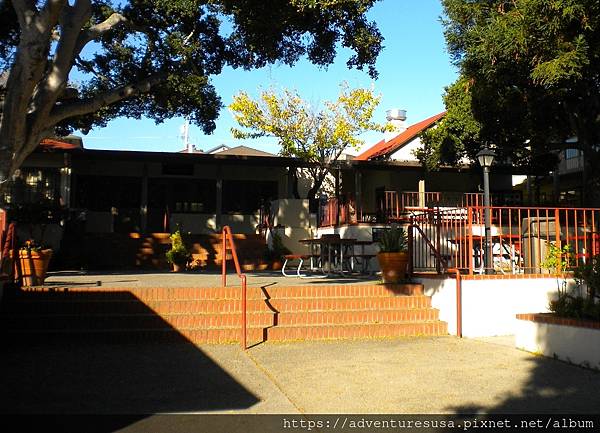 北加州的溫暖陽光下, 在中庭桌椅野餐應該很舒適愜意。