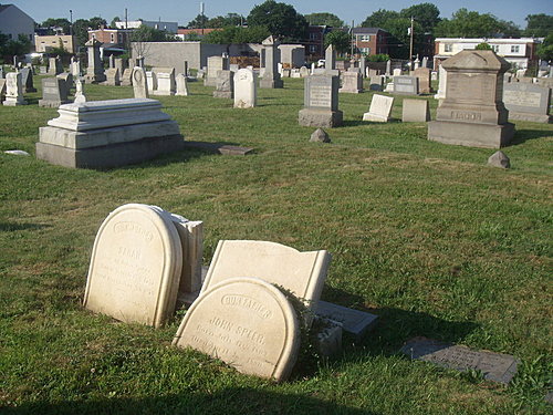 墓園裡很多墓碑有百年以上歷史, 從規模和設計來看, 這附近居民原本都是中產階級以上, 就跟美國很多其他城市的貧民區一樣, 當黑人搬進市區, 白人大規模搬離至郊區, 結果城裡很多漂亮的房子和公園漸漸被破壞和荒廢。