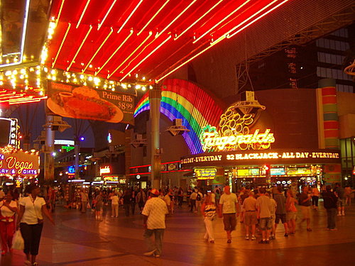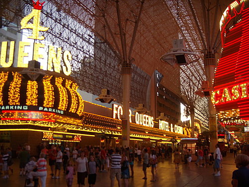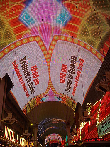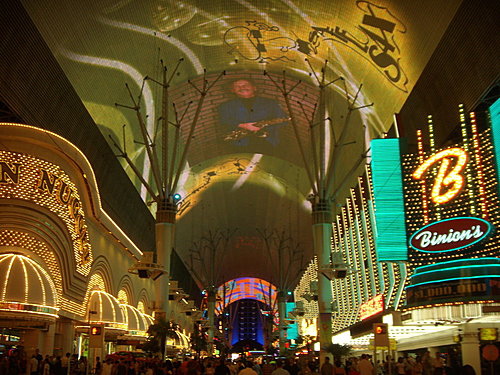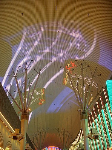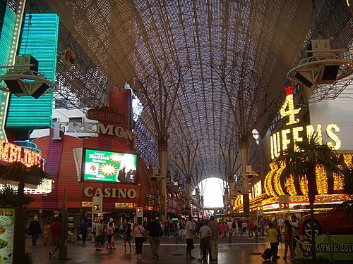 雖然這條街的歷史悠久, 是很多電視電影的重要場景, 後來開始面臨遊客流失逐漸沒落的困境, 90年代中期一項更新計畫 Fremont Street Experience 於是展開, 路中間搭的棚子就是計畫產物。