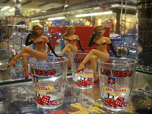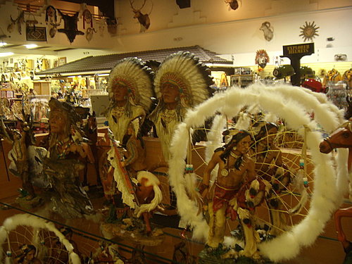 Fremont Street 路邊除了賭場還有一些紀念品專賣店, 裡面盡是些讓人失去購買欲望的東西... 這些印地安人紀念品是中國製的呢!