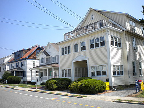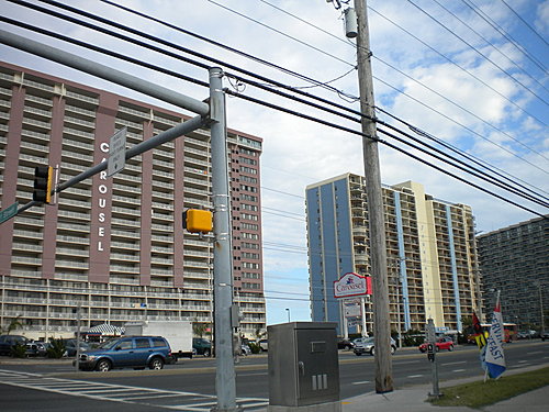 圖片中的旅館在馬里蘭州的 Ocean City, 不過有些海邊高樓不是旅館而是公寓, 有錢人買下來後租出去, 一次租一個星期, 租給來海邊度假的人, 租公寓的好處是有廚房, 可以自己開伙。