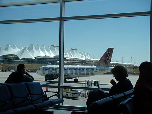 很快天又晴了。 丹佛國際機場的屋頂真的很好看, 但是內部飲食乏善可陳, 是阿甘看過最糟的