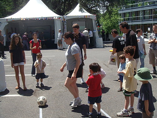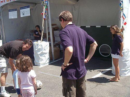 只有小朋友能來踢啦, 踢進那個洞就有獎品, 看起來難度頗高!