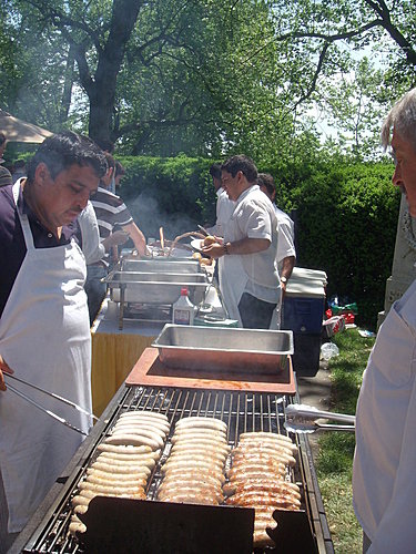 想吃肥美的德國香腸? 掏錢買吧! 烤香腸的竟然都是墨西哥人呢....有點沒誠意...