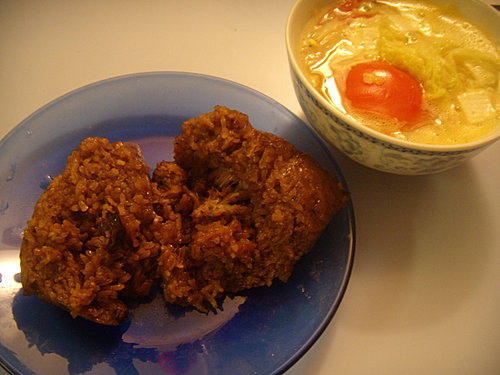 一顆肉粽配上一碗熱湯, 比螃蟹安全又可口。
