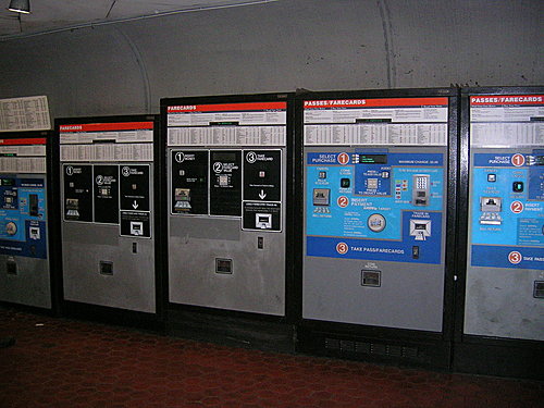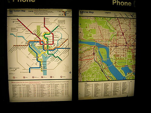 售票機旁有路線圖和車站附近的地圖, 跟台北捷運有幾分相似呢! Washington DC 的地鐵Metro 共有五條線, 86個車站, 往北行駛至馬里蘭州, 往南至維吉尼亞州。