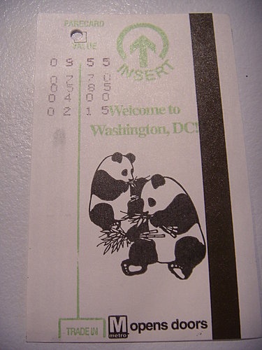 票是紙做的。 最低票價$1.35美金, 尖峰時間比離峰時間貴。 我花了$9.55買這張票, 可以讓我重複使用, 不用每次進站都買票, 也不限同一天使用。