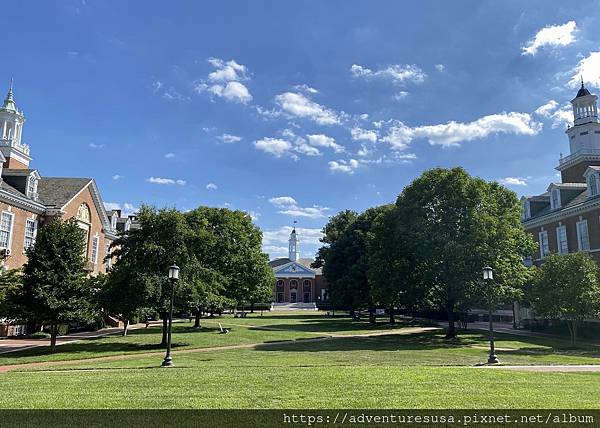 Johns Hopkins University 的 Homewood 主校園美麗古典, 附近環境也不錯, 跟巴爾的摩部分地區的衰敗貧窮成強烈對比。
