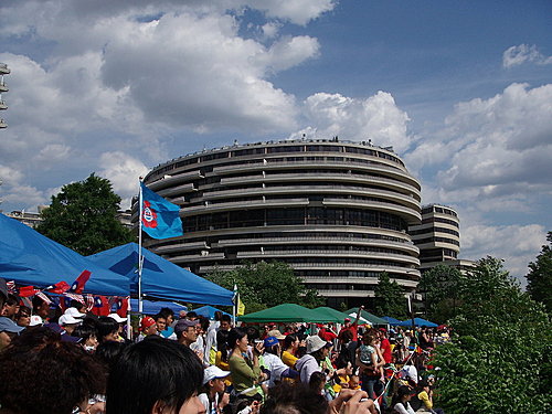 這個圓形建築頂頂有名喔!! 他叫做Watergate (水門), 美國近代知名政治醜聞 "水門事件" 就在此發生, 因而得名! 水門其實是一棟公寓, 跟門沒什麼關係......