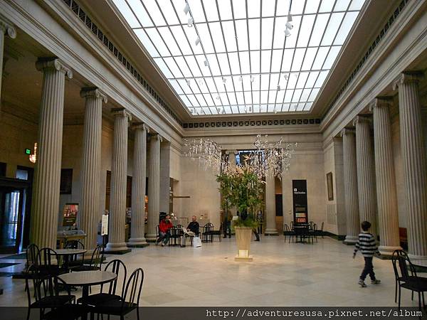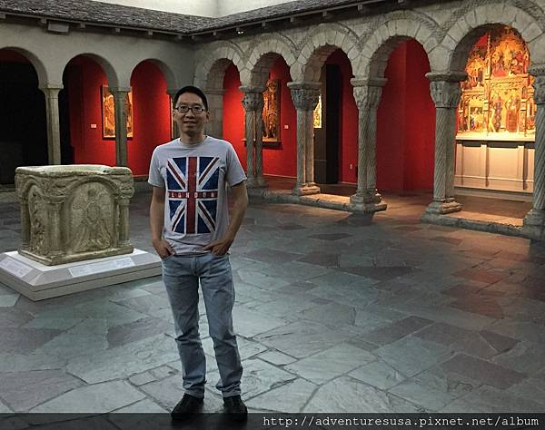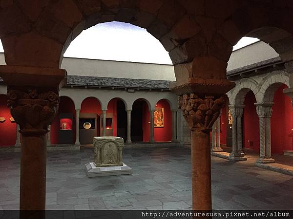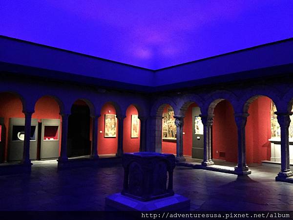 博物館裡的這個中庭叫做 Cloister Section, 有如身處室外。 四邊的石柱有三邊是從法國搬來的骨董, 可以追溯到十二世紀。