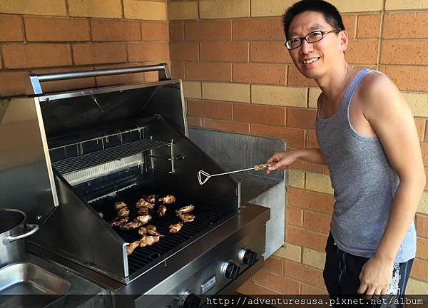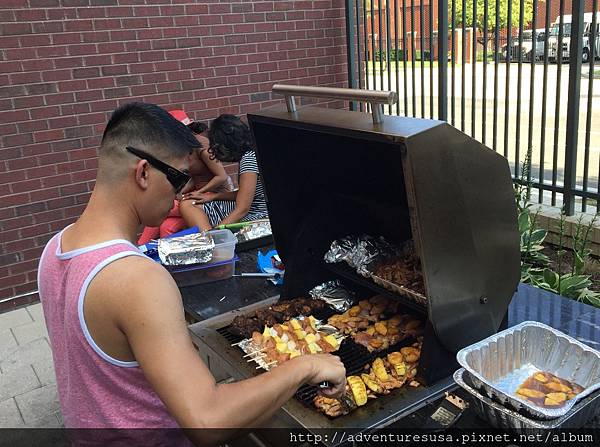 不過還是要有人站在外頭烤肉, 汗如雨下很辛苦。