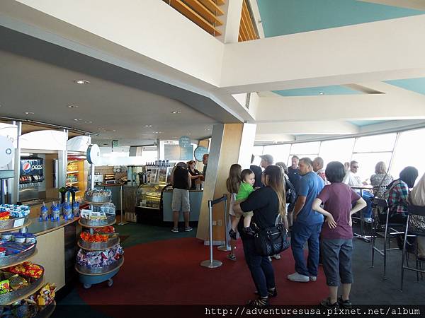 Space Needle 塔頂一共有六層樓, 包含一個旋轉餐廳。不妨挑個特別的日子帶情人來此一邊吃大餐一邊欣賞日落,絕對讓對方留下印象深刻。