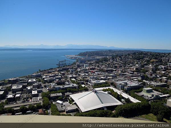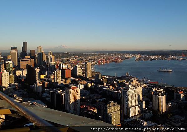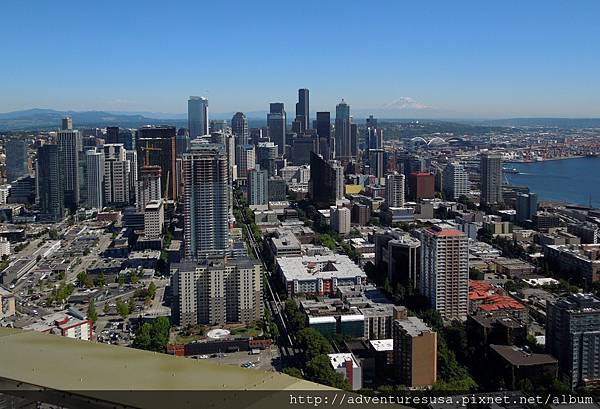 高度不是問題, 重點是視野極佳。遠方白靄靄的山頭是海拔4,392 公尺高的雷尼爾山, 天氣好的時候可以清楚看到全貌。