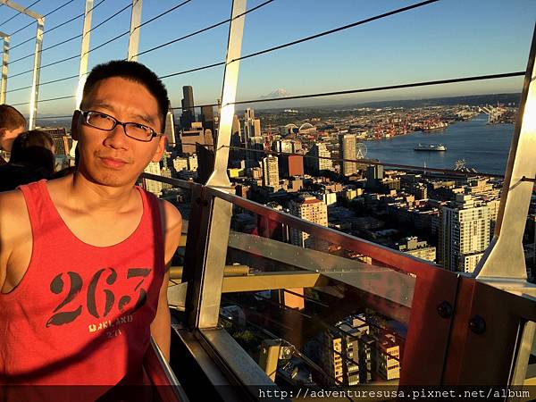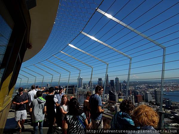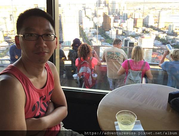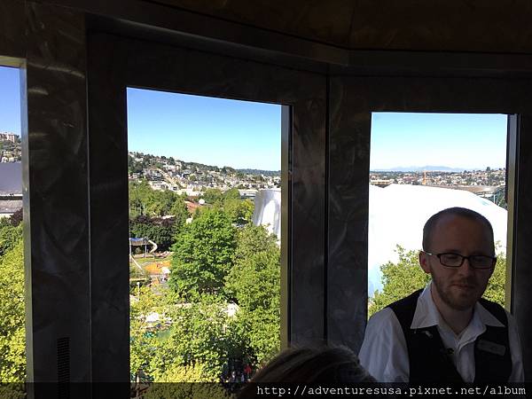 Space Needle 其實也沒有很高, 總高度(含天線) 184.41 公尺, 頂樓 158.12 公尺高。