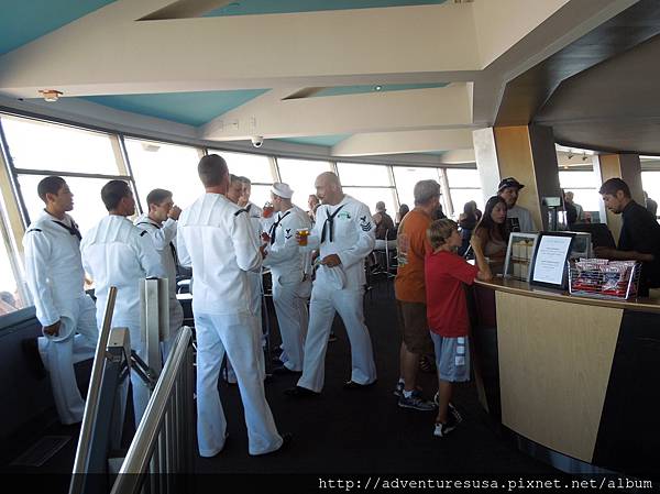 頂樓到了! 西雅圖有海軍艦艇停靠, 附近又有美國第三大海軍基地,因此市區內到處都有海軍官兵的身影。
