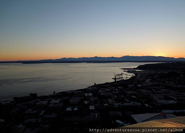 阿甘離開 Space Needle 跑到西雅圖的另一區吃晚餐又跑回來看日落。