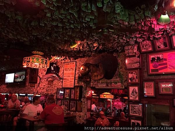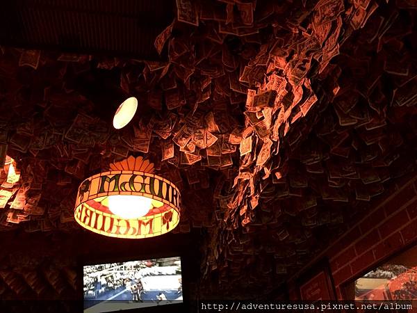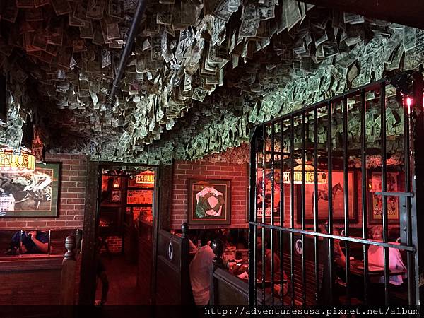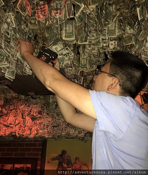 一走進門就知道為什麼這間酒吧怪的出名。 整個天花板上都是一元美鈔。