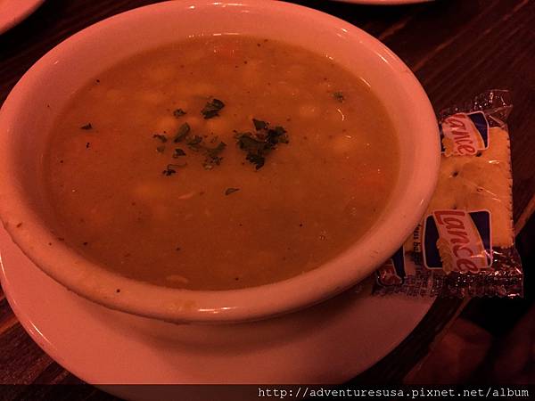 這碗豆子湯只要十八美分 (大約台幣六塊), 從1977 年開幕到現在維持一樣的價錢。 如果只點湯, 得付十八塊美金。