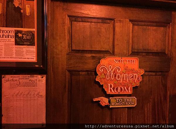 這家餐廳處處搞噱頭, 連廁所也不放過。 男生廁所的門上沒有 Men 這個字, 而是寫著: 非女生廁所。 沒看仔細的話會以為走錯。