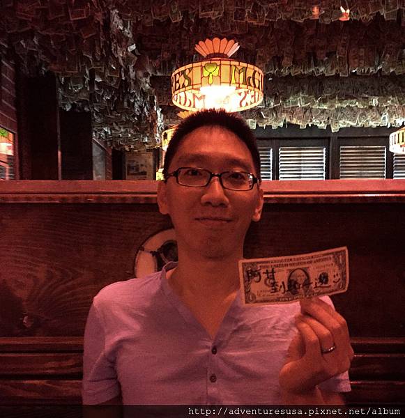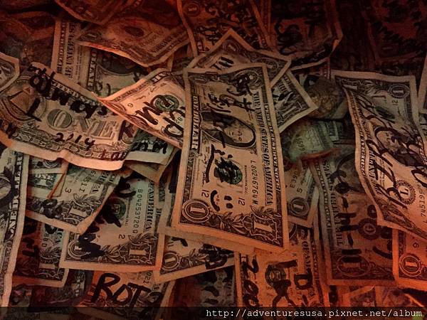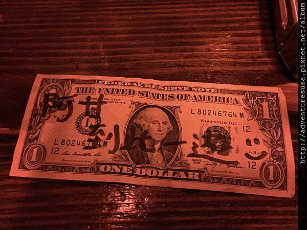 重點來了!! 來訪的食客都可以掏出一張一元美金鈔票, 然後在上面簽名。