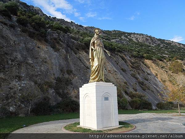 在大馬路旁邊看到這座金光閃閃的瑪利亞塑像, 竟然是美國人在1996年捐贈的。