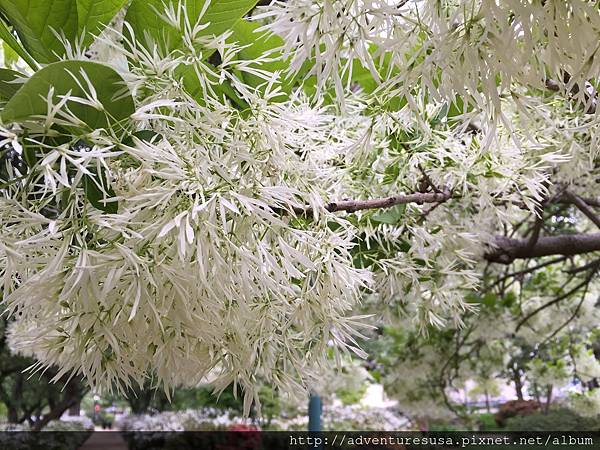 流蘇就在路邊開滿整棵樹, 讓人忍不住停下腳步。