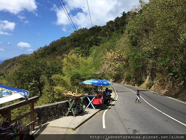 聖露西亞是中華民國在加勒比海的小小邦交國, 咱們繼續在聖露西亞探險~ 一路上看到很多香蕉園, 路旁就有果販賣香蕉和其他水果。香蕉是該國最大宗出口農產品。