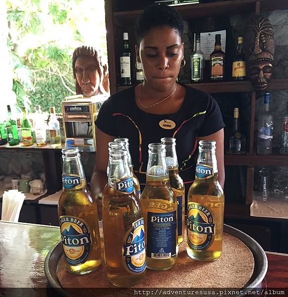 當地出產 Piton 啤酒, 便宜好喝。大熱天裡來一瓶 Piton 啤酒清涼解渴。