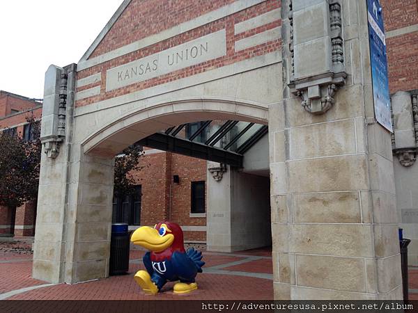 學生活動中心。 門口是 KU 吉祥物 Jayhawk