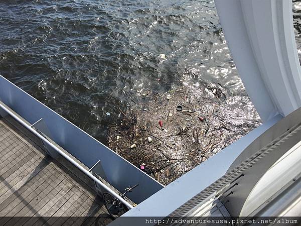 結果在橋的另一邊看到一堆垃圾浮在水面上