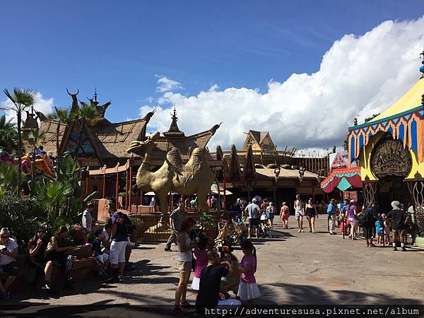 行進當中可以看到奇幻王果許多角落和設施。 可以看出阿甘對迪士尼其實沒很大興趣, 沒甚麼一定要搭的東西, 有玩到就好了。