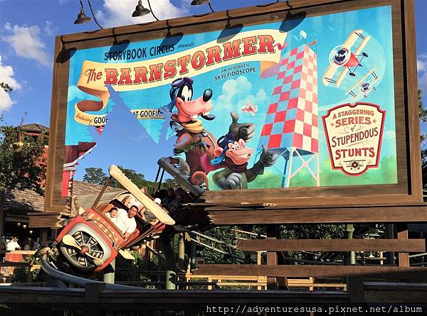 小朋友不會怕的雲霄飛車 Barnstormer。 老實說, 年紀越大越不想搭那種太刺激的雲霄飛車, 不願找罪受。