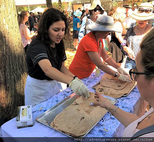 烤好的麵包分送給群眾品嘗。麵包很薄, 可以把它叫做餅, 沒甚麼特殊味道, 但是天然的麵粉味就很好吃了。