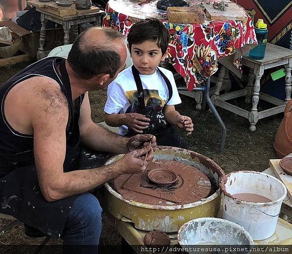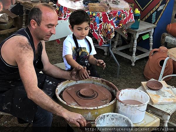 陶器製作示範, 現場的小朋友可以排隊參與, 親手操作, 有師傅教導