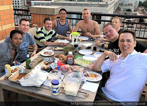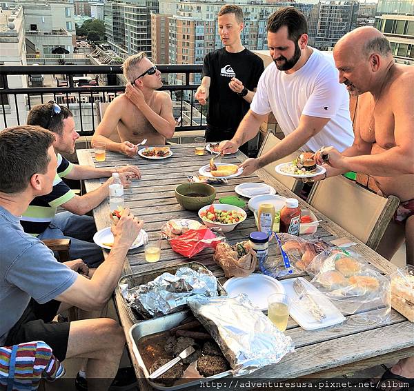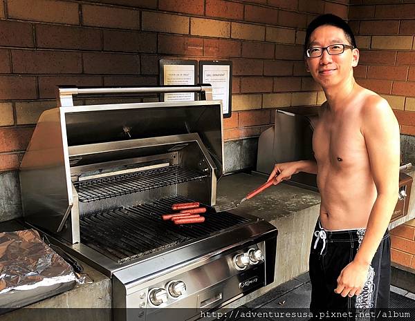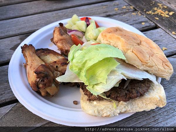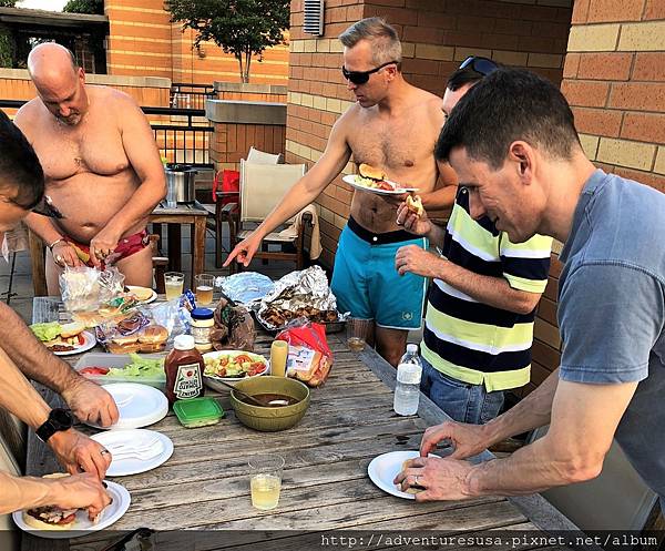 阿甘準備了漢堡, 熱狗, 雞翅, 沙拉。其他人帶飲料, 點心, 水果。