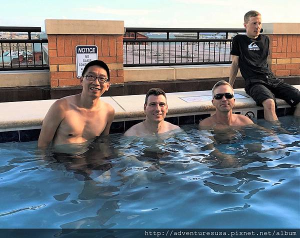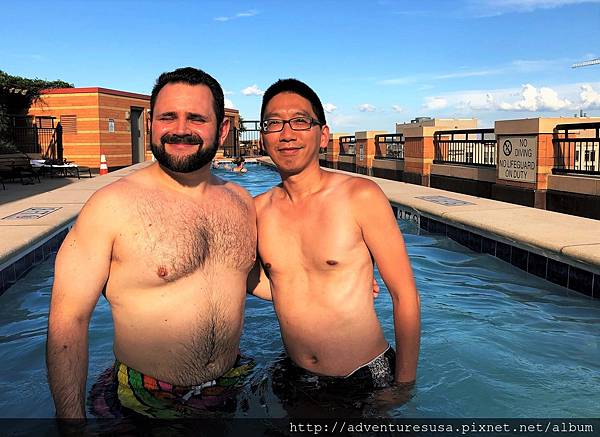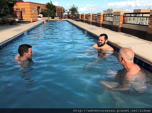 特別選在禮拜三傍晚, 邀請一干好友下班後來放鬆。周末的泳池會太擁擠, 鄰居全都出現, 很難玩得盡興。