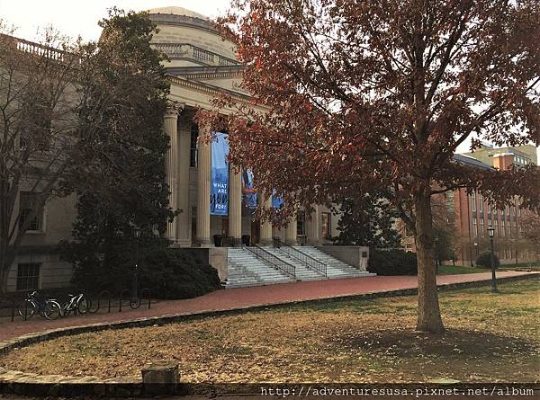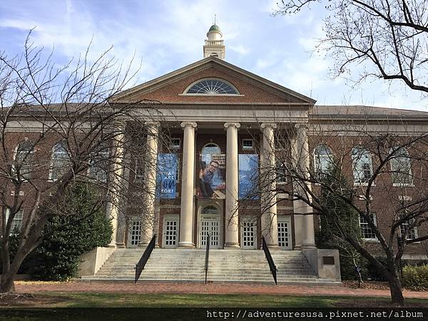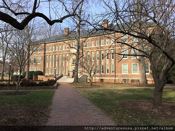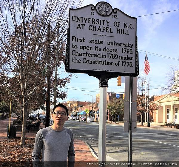 牌子上寫得很清楚, 該校是在 1789 年正式建立, 不過在1795 年第一棟校舍蓋好時就開始招收學生, 所以 UNC 是美國第一所公立大學。有人可能記得阿甘曾經介紹過一所位於維吉尼亞州的威廉與瑪麗學院, 也是美國最老公立大學。到底怎麼回事? 這就看怎麼定義古老和公立。1693 年就成立的威廉瑪麗學院的確較古老, 但當時是英國殖民地所屬, 美國獨立建國後是一所私立院校, 直到1906 年才正式成為維吉尼亞州的州立大學。所以大家各自表述囉!